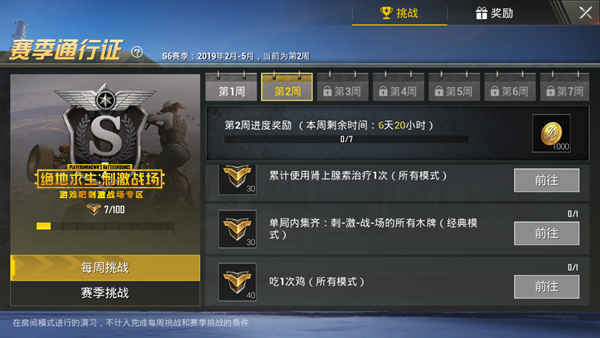 刺激战场在本周三公布了第6赛季第2周的赛季任务。那么刺激战场S6第2周任务是什么呢?下面小编带来刺激战场S6赛季第2周任务一览。