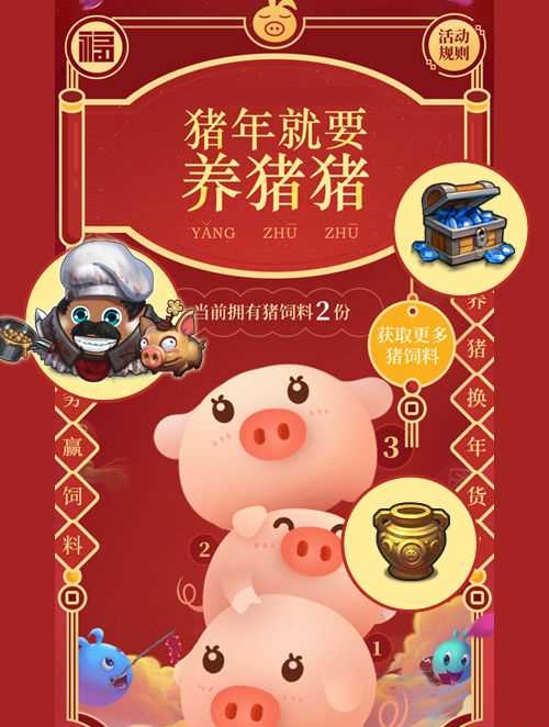 总结:养猪换年货活动玩法很有趣,大家给猪喂饲料可以获取很多奖励。