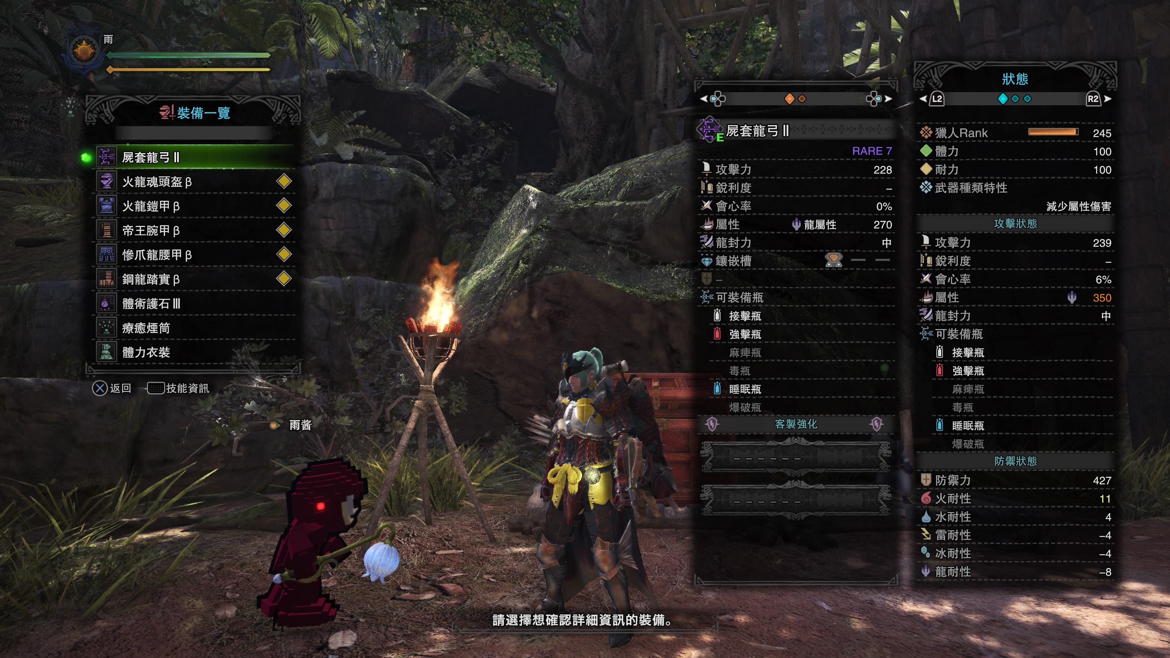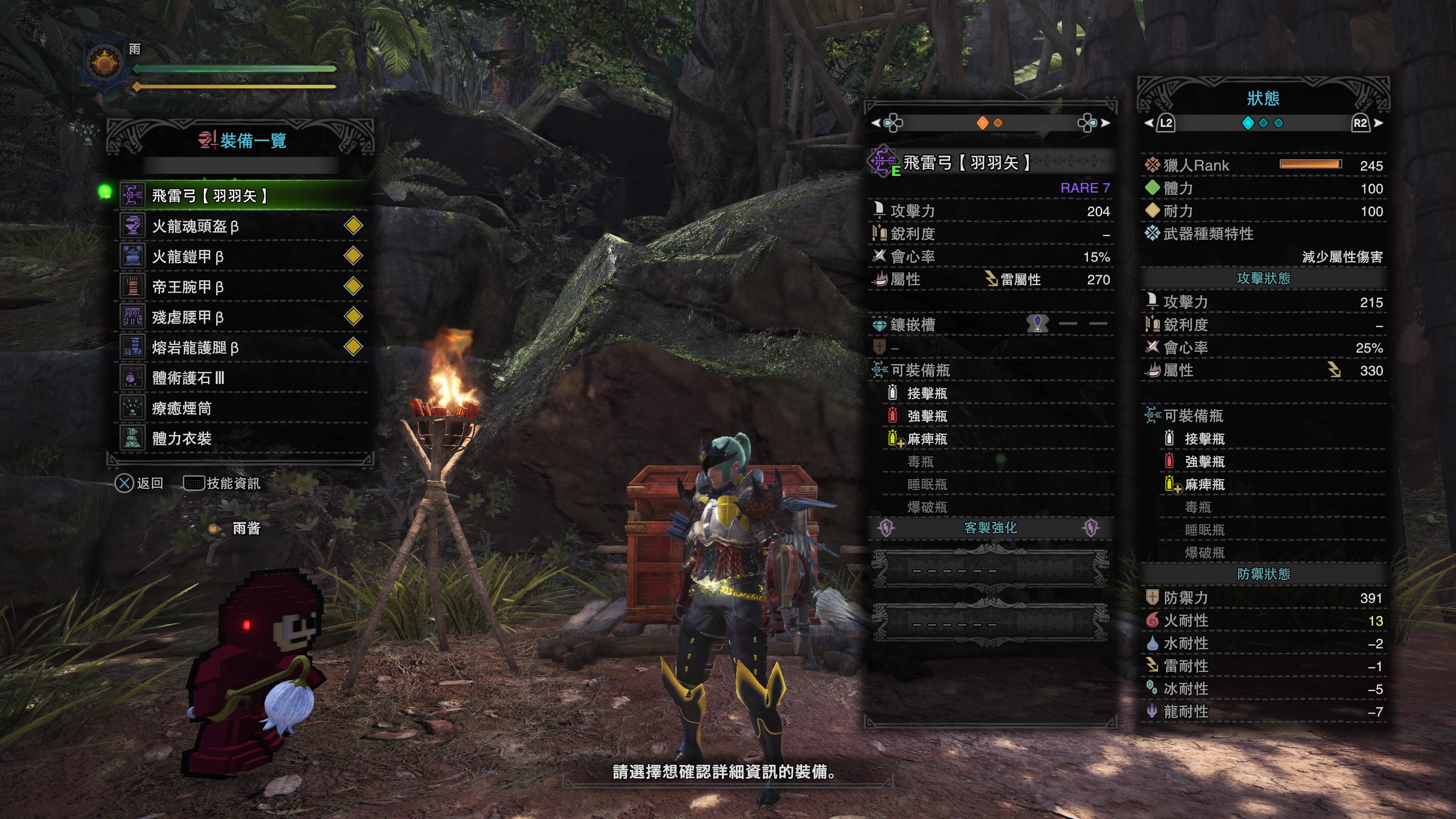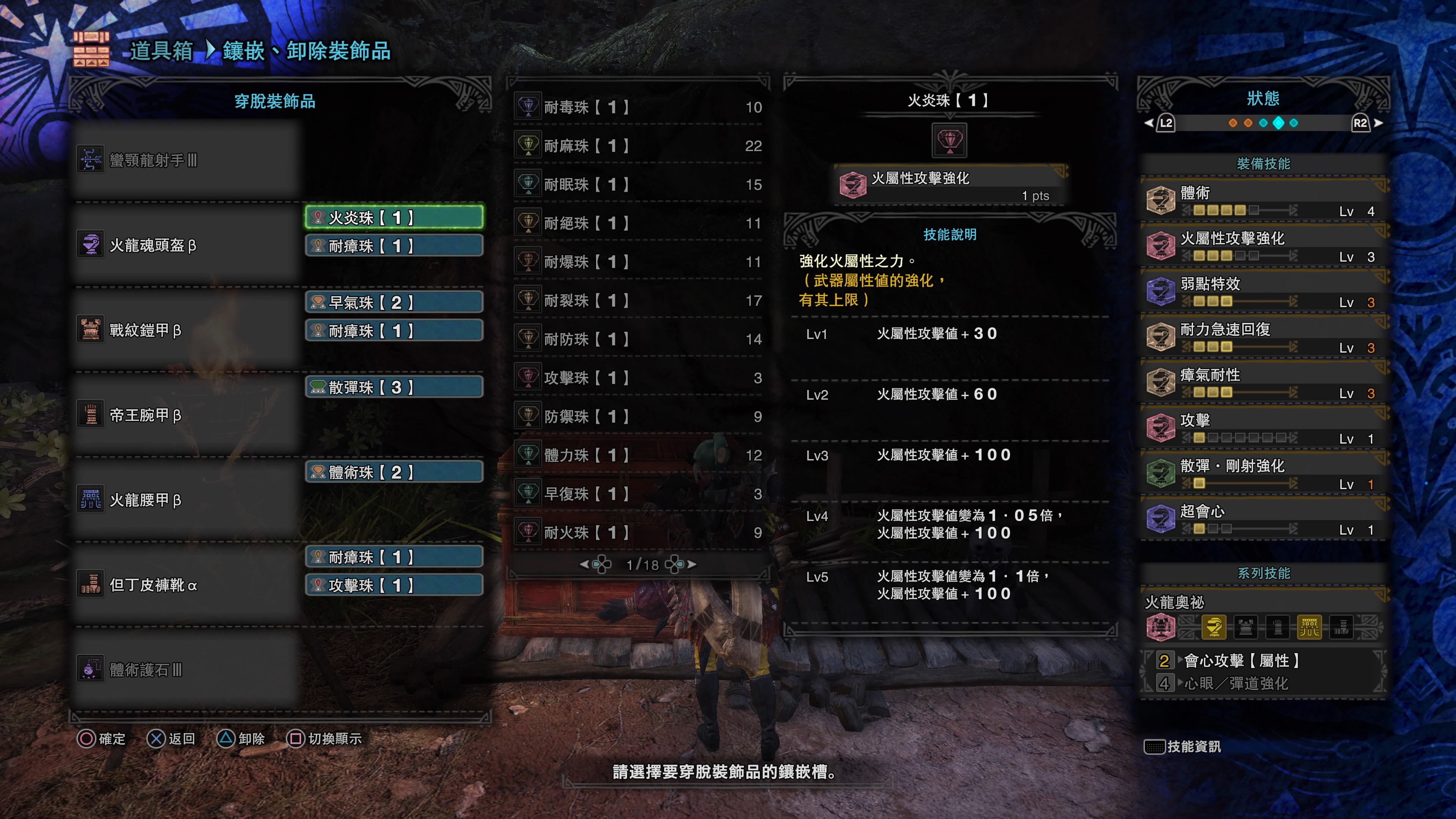 火龙两件真的是必备,而恰好火龙腰又有火属性攻击强化,所以配装相对于其他属性来说,火属性更有优势一些。