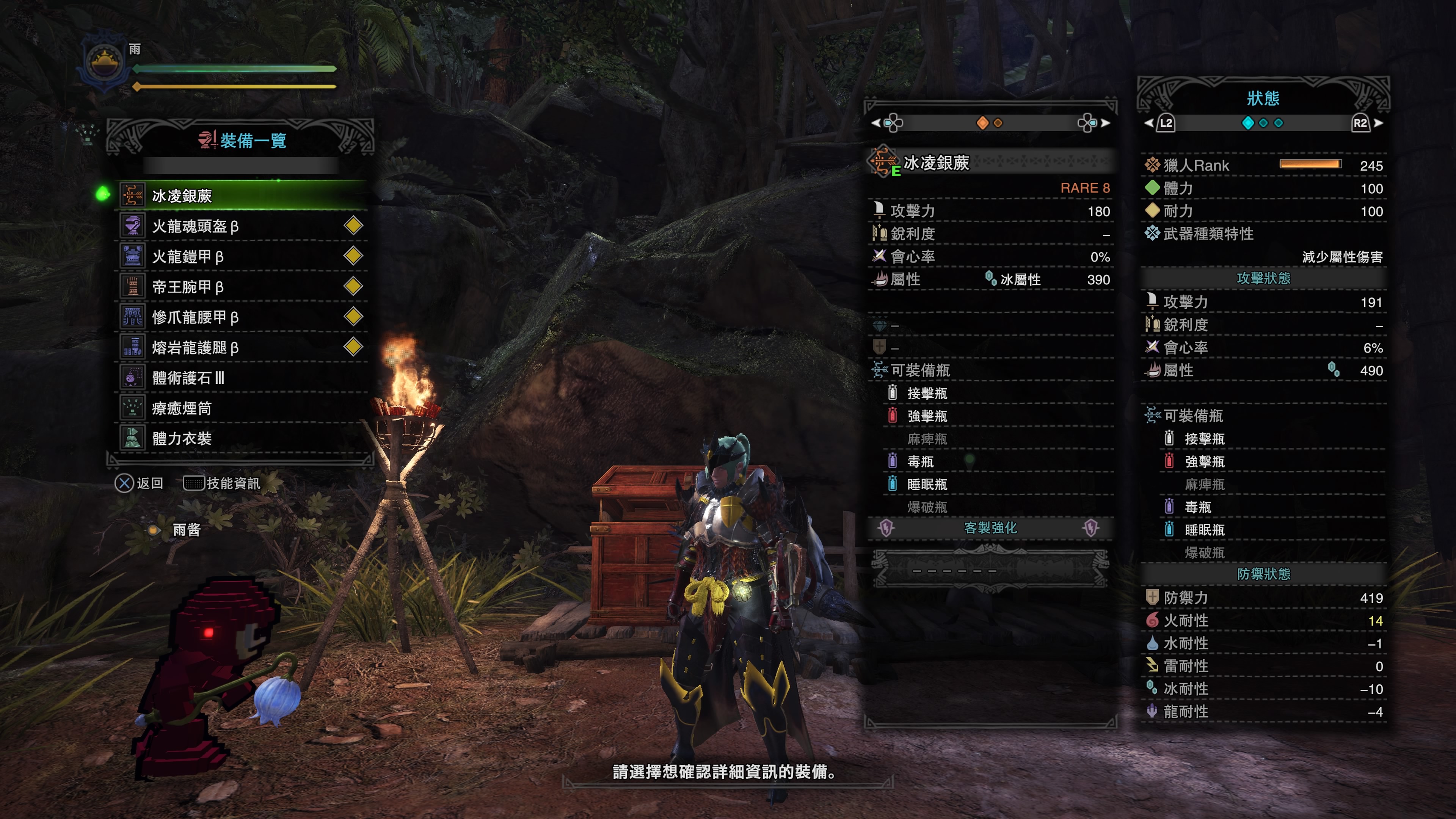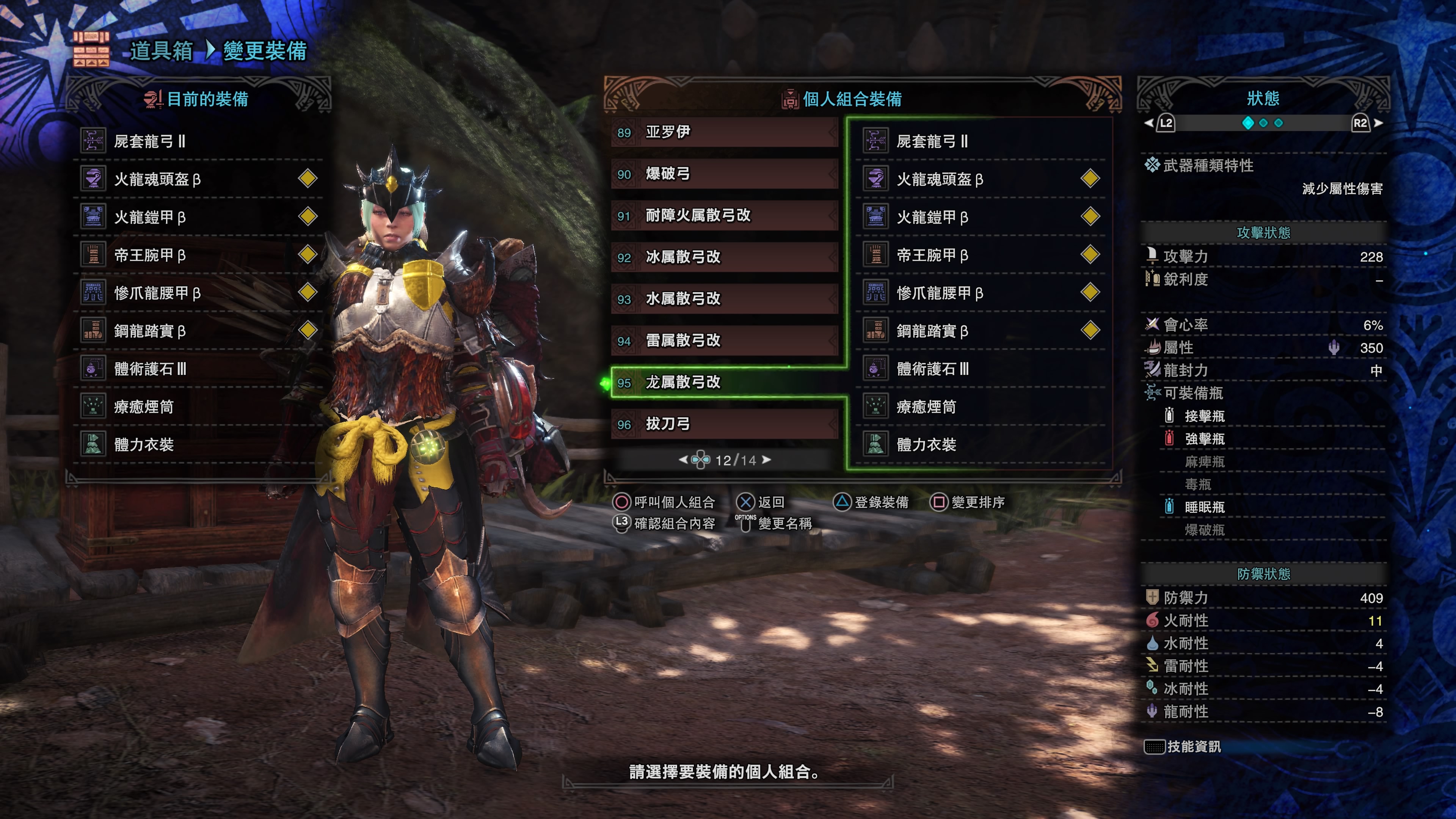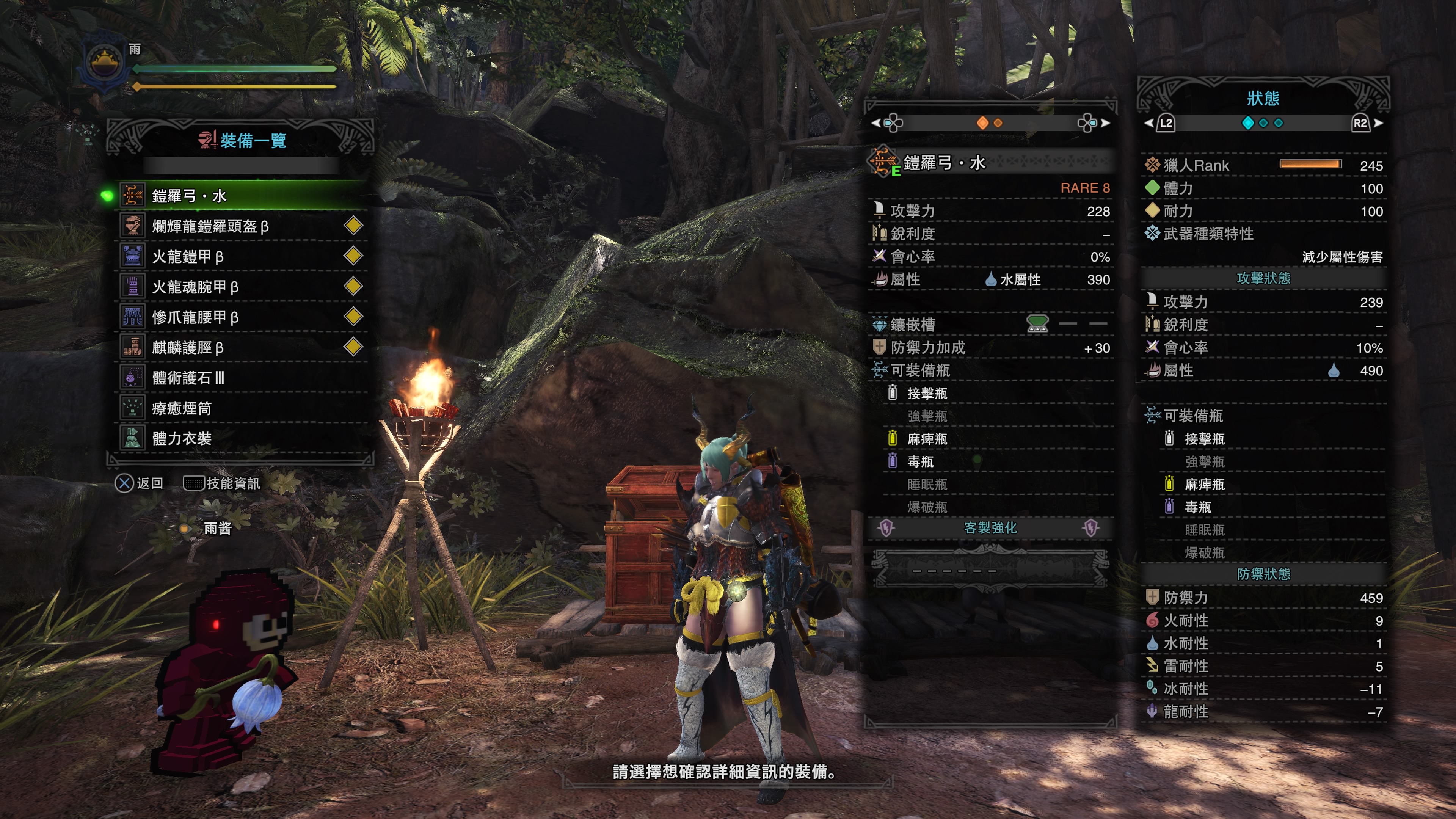 火龙两件真的是必备,而恰好火龙腰又有火属性攻击强化,所以配装相对于其他属性来说,火属性更有优势一些。