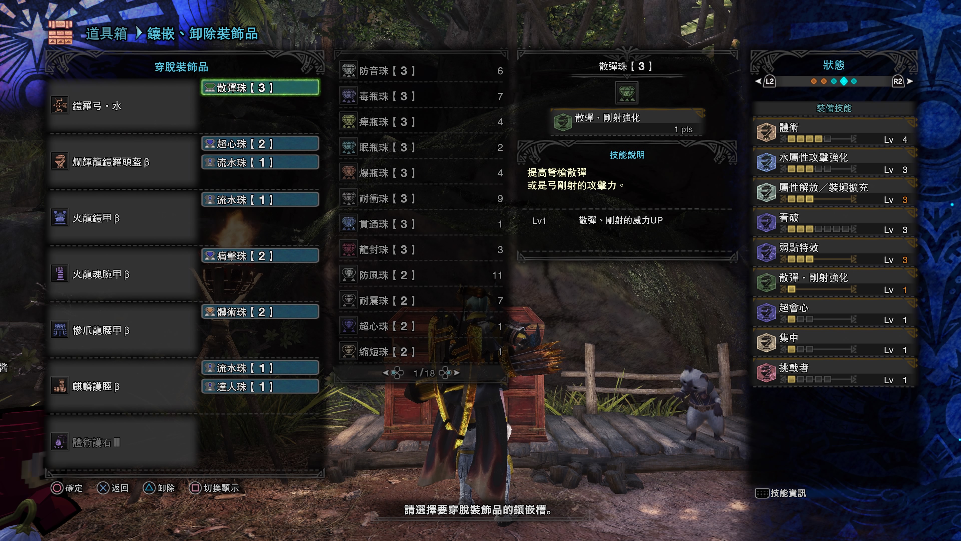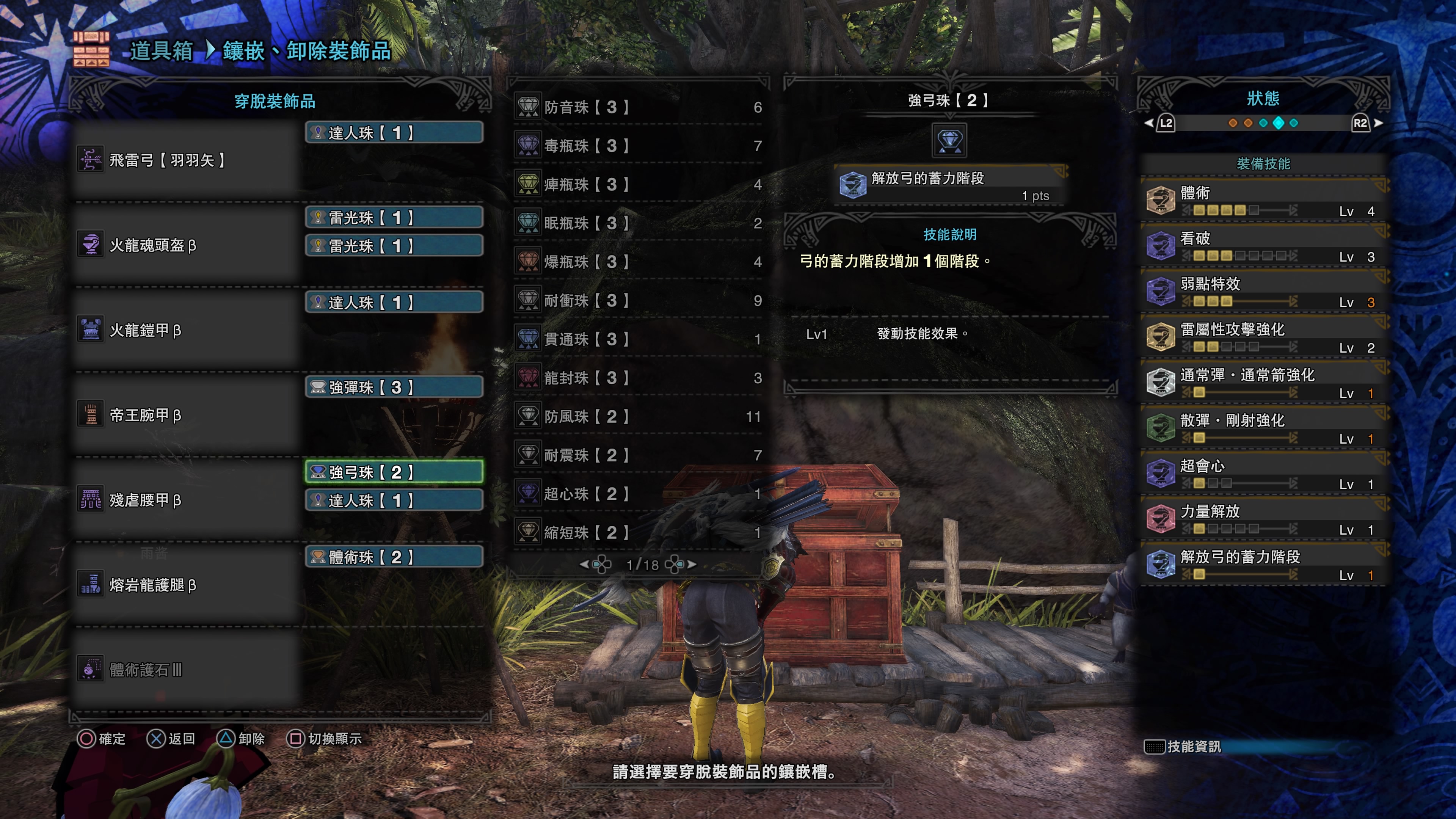 基本上我用火弓都是来打尸套龙的,所以配了耐瘴,要打风飘的话,自己改一下珠子吧!