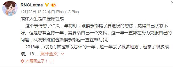 RNG在S8这一年的经历可谓是像坐过山车一样,在豪取了五连冠后,几乎所有粉丝都期盼着RNG在今年取得S8的总冠军,拥有一个完美的落幕,然而在S8世界赛上,RNG被G2战队击败,结束S8世界赛征程,RNG在LPL的地位一落千丈,不仅失去往日的荣光,还被许多网友接二连三的嘲讽,带给了RNG所有队员巨大的压力,就在昨天,RNG的上单选手Letme发长文疑似暗示将要退役,又牵动起了不少粉丝的心。