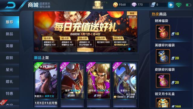 王者荣耀正式服已经进行了常规更新,但很遗憾的是,本周内并不会开启每日充值活动与积分夺宝活动。不过元旦即将来临,所以这些活动都推到了元旦期间上线,那时候刚好有KPL皮肤、华尔街大亨、天堂福音上架,结合新皮肤推出效果更好。除了这两大活动之外,每月初的1元礼盒将在元旦来袭,星夜王子体验卡、电玩小子体验卡、暗夜贵公子体验卡、街头霸王体验卡加入至礼盒中。