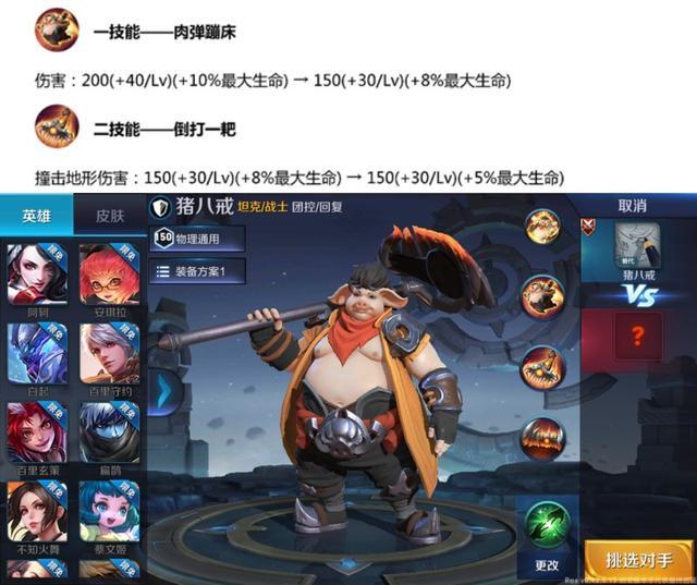猪八戒削弱:1/2技能伤害降低,猪八戒定位坦克。