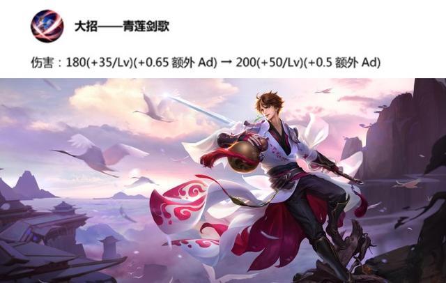 李白增强:回调了大招的基础伤害,与正式服保持一致,但比正式服少了0.2的额外AD加成,后期伤害下降不少。