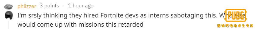 随之而来的是玩家们对任务合理性潮水般的质疑。即使已经受到过第一周的“我是破坏王”、“停在轰炸区”、“在一局里用UZI发射300发子弹”等完全没有游戏体验任务的折磨,玩家们还是低估了第二周任务的疯狂程度,并对蓝洞故意刁难的设计感到非常不满。以其中一个任务“用蹦蹦开500公里”为例,在REDDIT就有不同玩家发了多个帖子来批评这个任务,得到了许多玩家的回应。