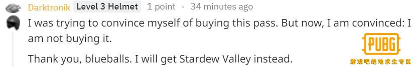 “我之前一直都在说服自己把雪地通行证买了,但是我现在觉得没必要了。感谢你,蓝球们,我还是去玩星露谷物语吧。