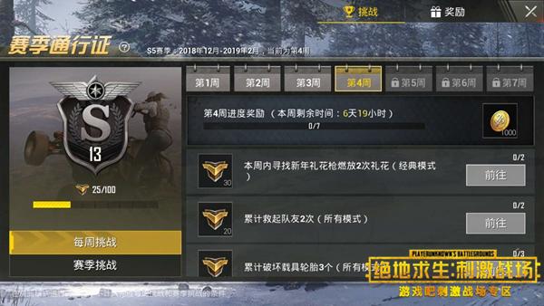 又是一个周三,这也是2018年最后一个周三了,在今天我们迎来了刺激战场S5赛季的第4周任务,在今天又有什么神奇的任务解锁呢?下面游戏吧小编就为大家介绍刺激战场S5赛季第4周任务。